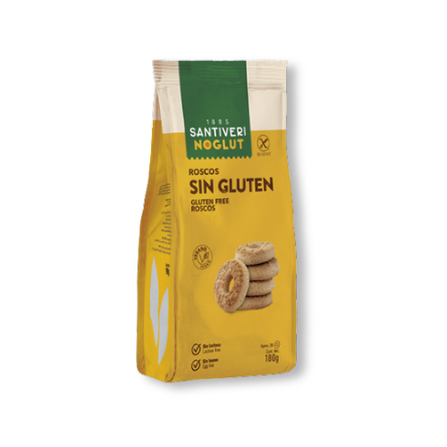 Deliciosas bolachas em forma de roscos, feitos a partir de cereais sem glúten e sem derivados lácteos.